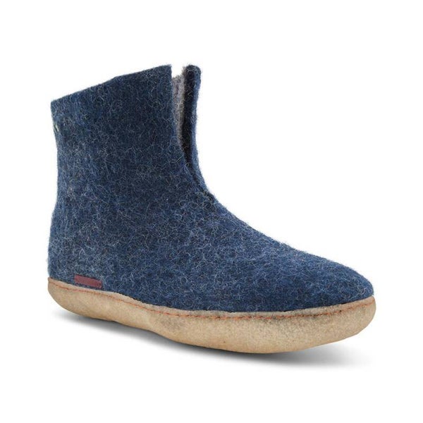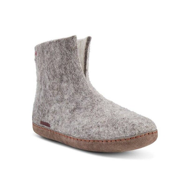 Zachte, lichte en warme pantoffel van 100% wolvilt in een pull-on-stijl die 1-2 inch over je enkel komt met een split aan de voorkant voor comfort. Dit model heeft een crêpezool van natuurlijk rubber die zeer slipvast is. Ontworpen voor mannen en vrouwen en gemaakt van Nieuw-Zeelandse wol, ze houden je voeten het hele jaar door warm en droog.