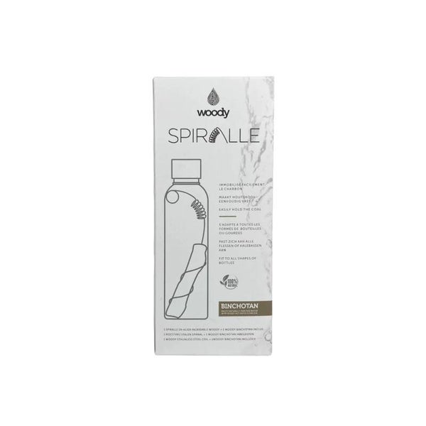 Deze houtskool waterfilter is uitgerust met een roestvrij stalen spoel die het op zijn plaats houdt in elke fles.